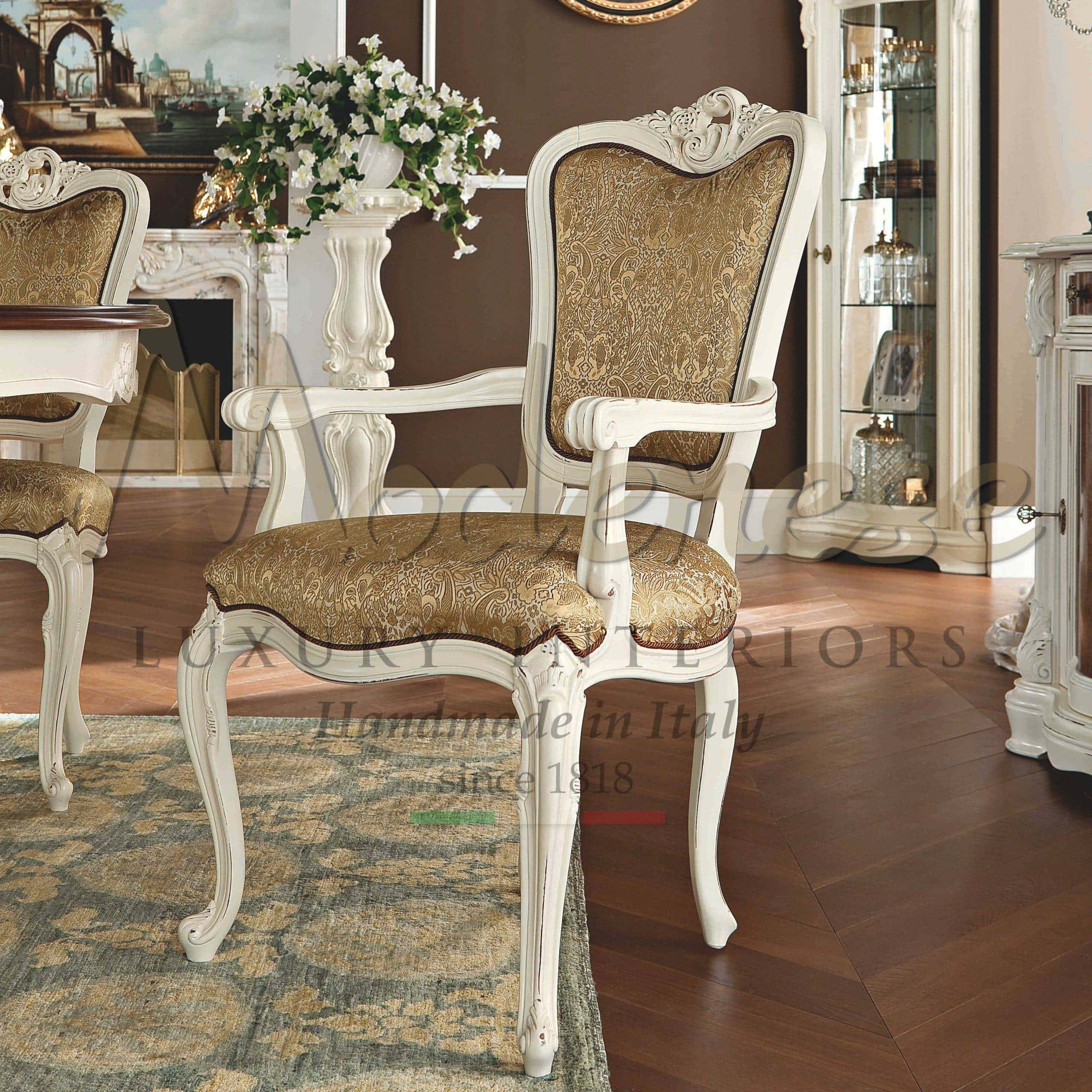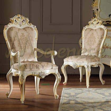 Choose and admire your dateless and luxurious most suitable exclusive chairs searching through Modenese Luxury Interiors sophisticated chairs collections. Try the sense of comfort and uniqueness of an authentic Italian piece of furniture. Chairs may be a stylish part of your luxury Italian furniture sets to complete the spaces of your royal dining room. If you are seeking superior craftsmanship, beautiful design, comfortableness and much more, you must consider Italian solid wood handcrafted luxury dining chairs by Modenese.