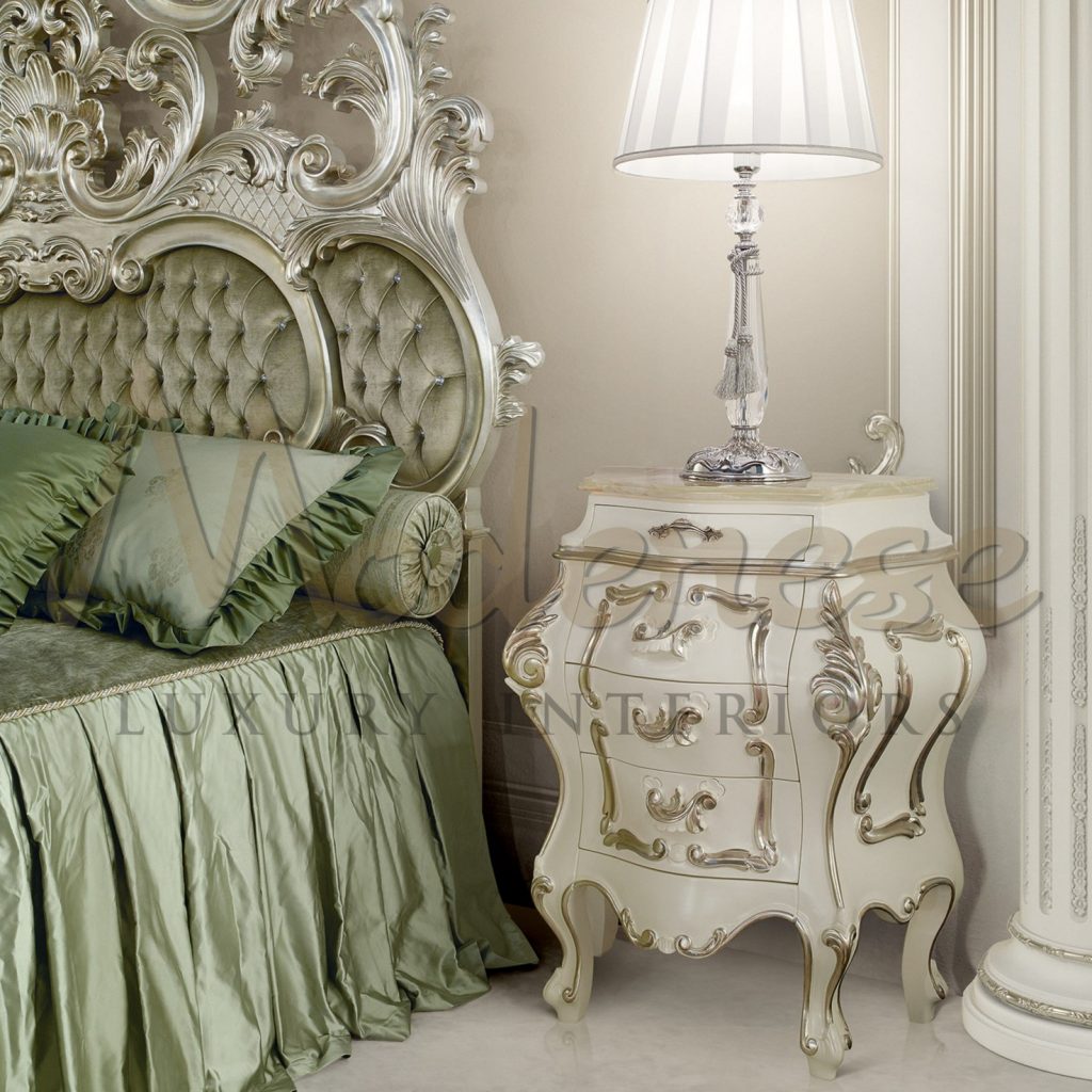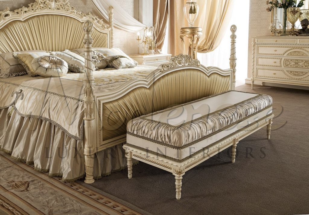 من المتوقع وجود أثاث خشبي على شكل ألواح مطليّة ورش النحاس أو الذهب الناعم. يجب أن يكون لون أثاث غرفة النوم أغمق بدرجتين من لون الجدران. الأثاث الجلدي مناسب لغرفة نوم بتصميم كلاسيكي وسيساعد في الحفاظ على المساحة إذا كانت غرفة النوم صغيرة. يجب ألا يعيق الأثاث الضخم والعناصر غير الضرورية التدفق أو الإضاءة. ستبدو غرفة النوم رائعة بكمية صغيرة من الأثاث المصنوع من مواد عالية الجودة، دون إرهاق التصميم. يتم تحديد نظام الألوان بالكامل من قبل مالكي المباني وتفضيلاتهم في التصميم. سيساعد استخدام الألوان الرمادية أو غير اللامعة في غرفة النوم على خلق الراحة؛ ستساعد هذه الألوان على الاسترخاء. ستوفر درجات اللون العاجي أو الأبيض النقي النضارة والنقاء لغرفة النوم، بينما ستضيف ترتيبات الزهور الحية خفة إلى الفضاء. ستملأ درجات اللون الأزرق الفاتح الفضاء بلمعان لطيف، مما يجعله ساحرًا.