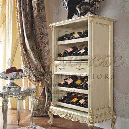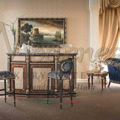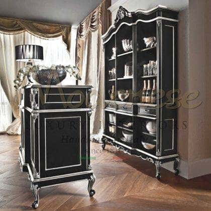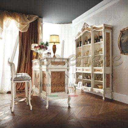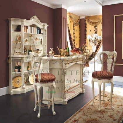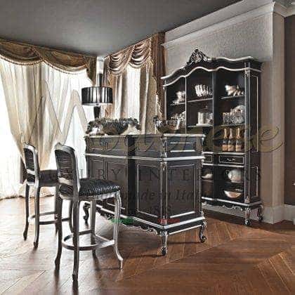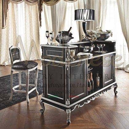 Modenese Luxury Interiors مجموعة تصميم حصرية من أثاث عدادات البار تعني السحر والوظائف في نفس الوقت، وقابلة للتكيف مع كل جو بار منزلي. تصميم حصري متطور، وخشب صلب، وتصنيع يدوي وتخصيص بالنقش أو الزخارف الزخرفية المصنوعة يدويًا تمثل بعض من أعلى الخصائص التي تميز هذه المجموعة الرائعة من الأثاث. تعتبر المقصورات المخصصة، والأرفف الزجاجية، وأسطح الرخام، وقبو النبيذ، والثلاجة المدمجة مجرد عدد قليل من الميزات المصممة خصيصًا التي قد تختارها لتعزيز عداد البار المنزلي المفضل لديك بنسبة 100٪.