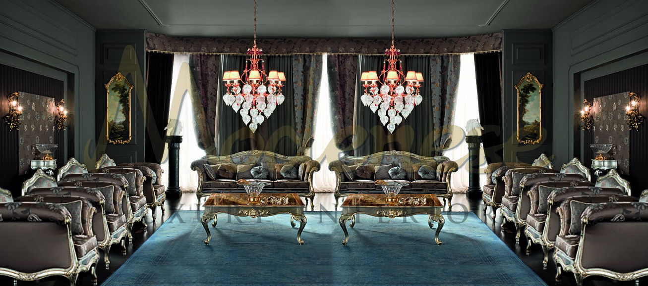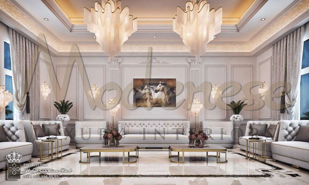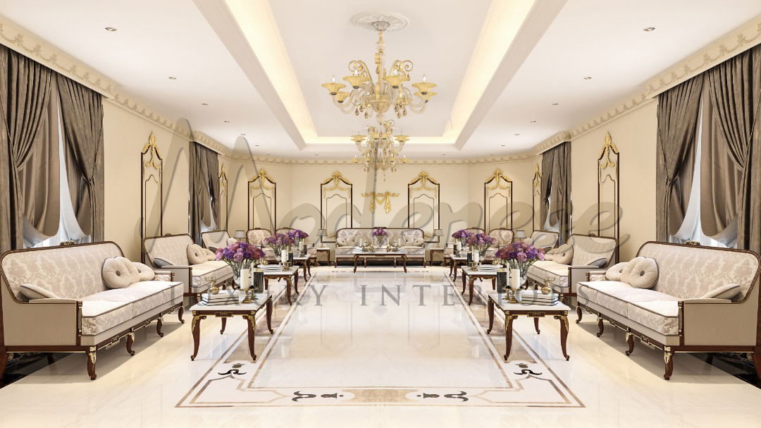 لإنشاء ديكور رائع وكامل كهذا، يجمع مصممو Modenese Luxury Interiors بين الأفكار الجديدة والتكنولوجيا الحديثة والتقاليد الجمالية الكلاسيكية. كان جناح غرفة المعيشة الكلاسيكية الفاخرة ذروة قصة داخلية رائعة حيث كان لكل عنصر وكل مكون من مكونات التصميم دلالة فلسفية. أصبح ديكور غرفة المعيشة هو الطريقة الرئيسية لعرض ذوق المالك وحسن السمعة والود.