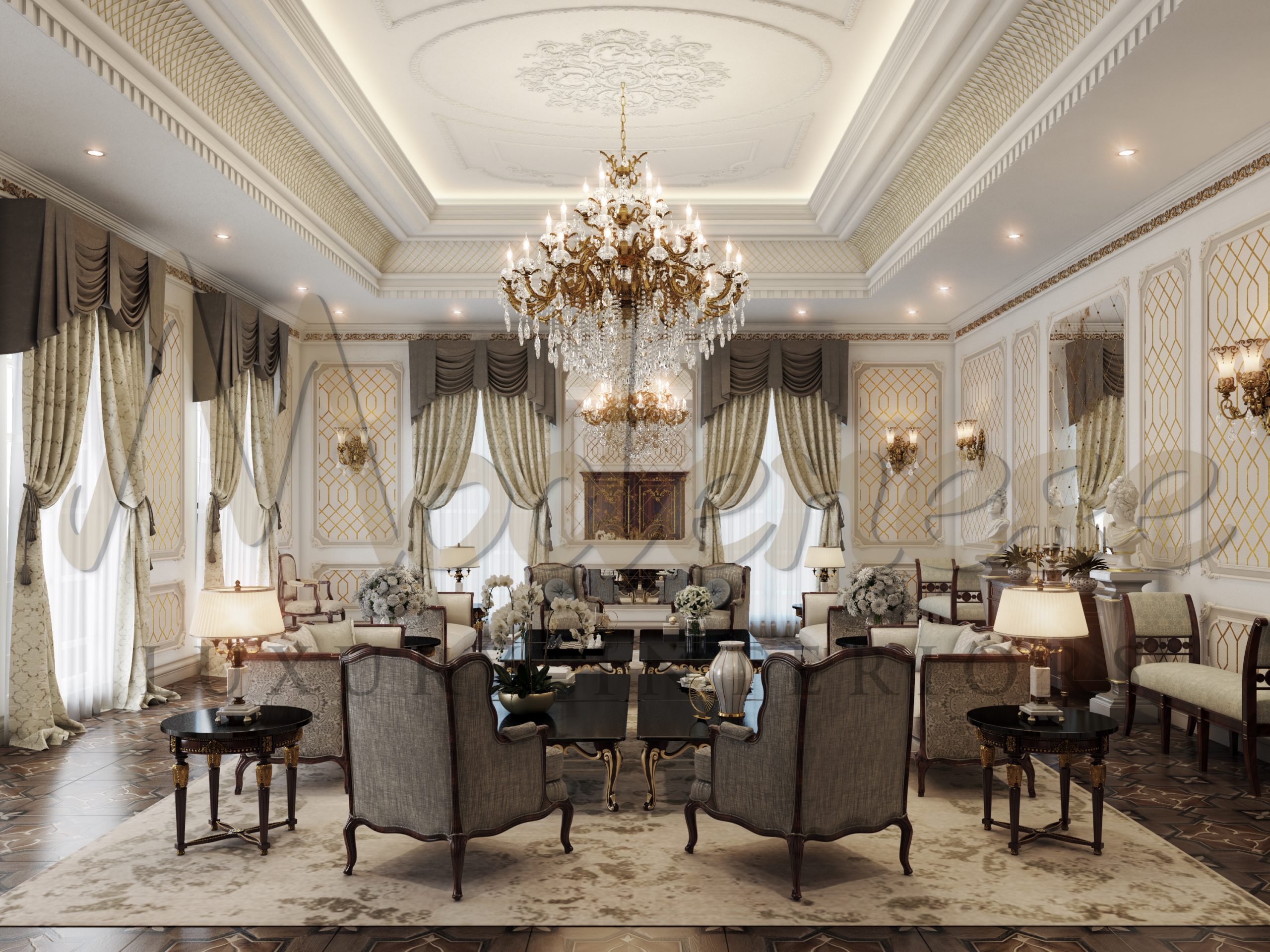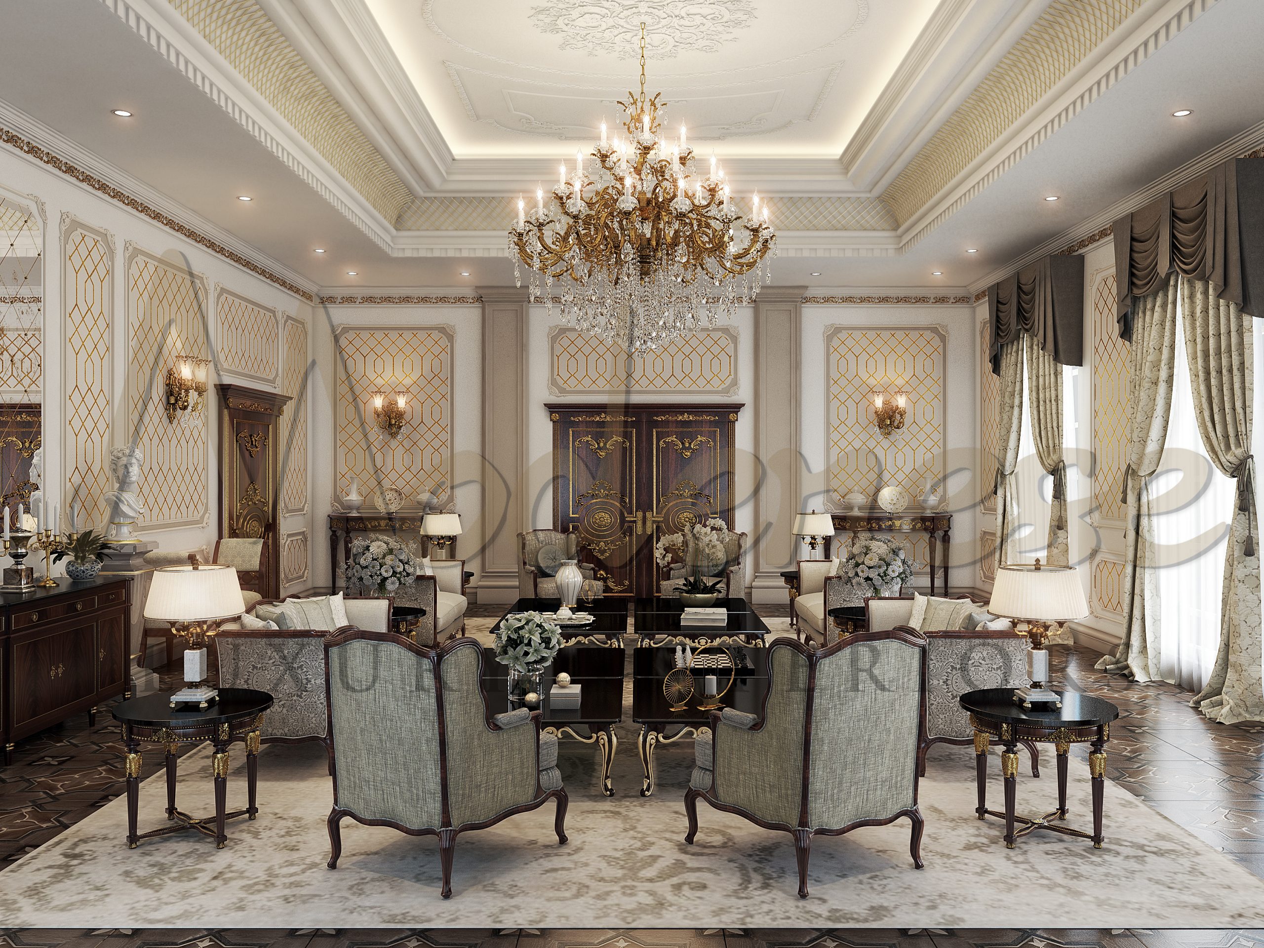 تشتهر Modenese Luxury Interiors في جميع أنحاء العالم بإنجازاتها الرائعة في المشاريع في المواقع الأكثر فخامة في العالم. أحد تخصصات الشركة ومجالات خبرتها هو تطوير مشاريع متميزة مثل القصور والفنادق الفاخرة والفيلات المرموقة والقصور الفاخرة. تحقق الإعدادات الفاخرة من أكثر التصميمات الداخلية أناقة وعملية عندما يتعلق الأمر بغرف المعيشة. دائمًا ما يقوم Modenese Luxury Interiors بتنفيذ التصميم الأكثر أناقة لغرف المعيشة على الطراز الملكي ذات الطابع الكلاسيكي أو الفيكتوري، لأنه سيعبر عن ثروة وأسلوب حياة المالكين. تمكن فريق Modenese Luxury Interiors دائمًا من التركيز على كل عنصر من عناصر الإعداد الداخلي.