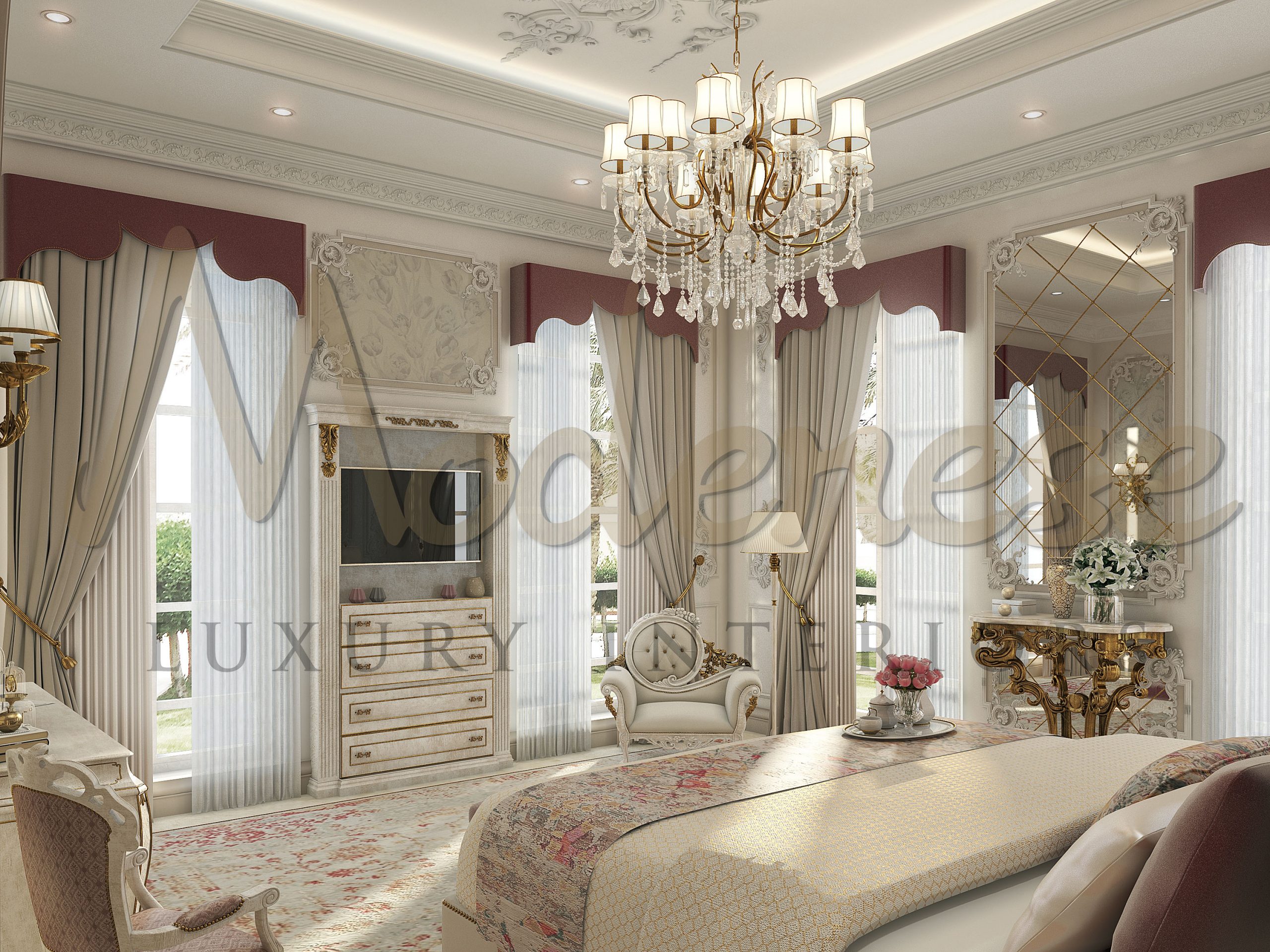 Les meubles de Modenese Luxury Interiors sont enrichis de styles classiques auxquels les décorations de chambres classiques ne peuvent résister, ainsi que de motifs subtils issus de l'art de la gravure sur bois entièrement naturel. Les chambres à coucher italiennes traditionnelles, qui apportent élégance et splendeur aux pièces, ajoutent une touche unique à l'espace avec leurs designs originaux. De cette façon, vous pouvez profiter à la fois du confort et de l'élégance au même endroit. Les types de chambres classiques sont produits pendant des années de durabilité difficile, en utilisant des matériaux robustes et de première qualité. Les pièces que vous pourrez utiliser pendant longtemps apportent de la valeur à votre vie. Les pièces sont soigneusement conçues pour répondre aux besoins de l'espace, en plus de leurs décorations accrocheuses.