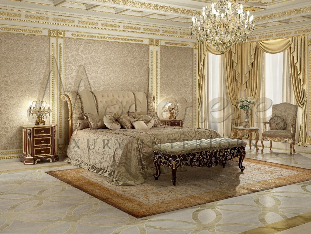 这是最受欢迎的风格之一。为了保持传统,我们在卧室中使用灰泥、手工雕刻家具、镀金和传统设计元素。我们的设计师为豪华卧室环境创作作者家具。卧室的装饰深受纺织品的影响。一张床和窗户装饰营造出奢华而温馨的氛围。天花板装饰也发挥着重要作用。躺在一张豪华的床上,我们设计出令人惊叹的选择。我们为传统的枝形吊灯添加现代照明方法,以增强模具中光影的有趣互动。大理石雕刻或美丽的镶木地板可用于美化卧室内部的地板。