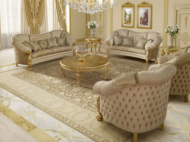这个版本展示了一套卧室家具,由一张圆形咖啡桌和两把豪华扶手椅组成。意大利家具制造商精湛的工艺使这些家具成为真正的视觉中心。