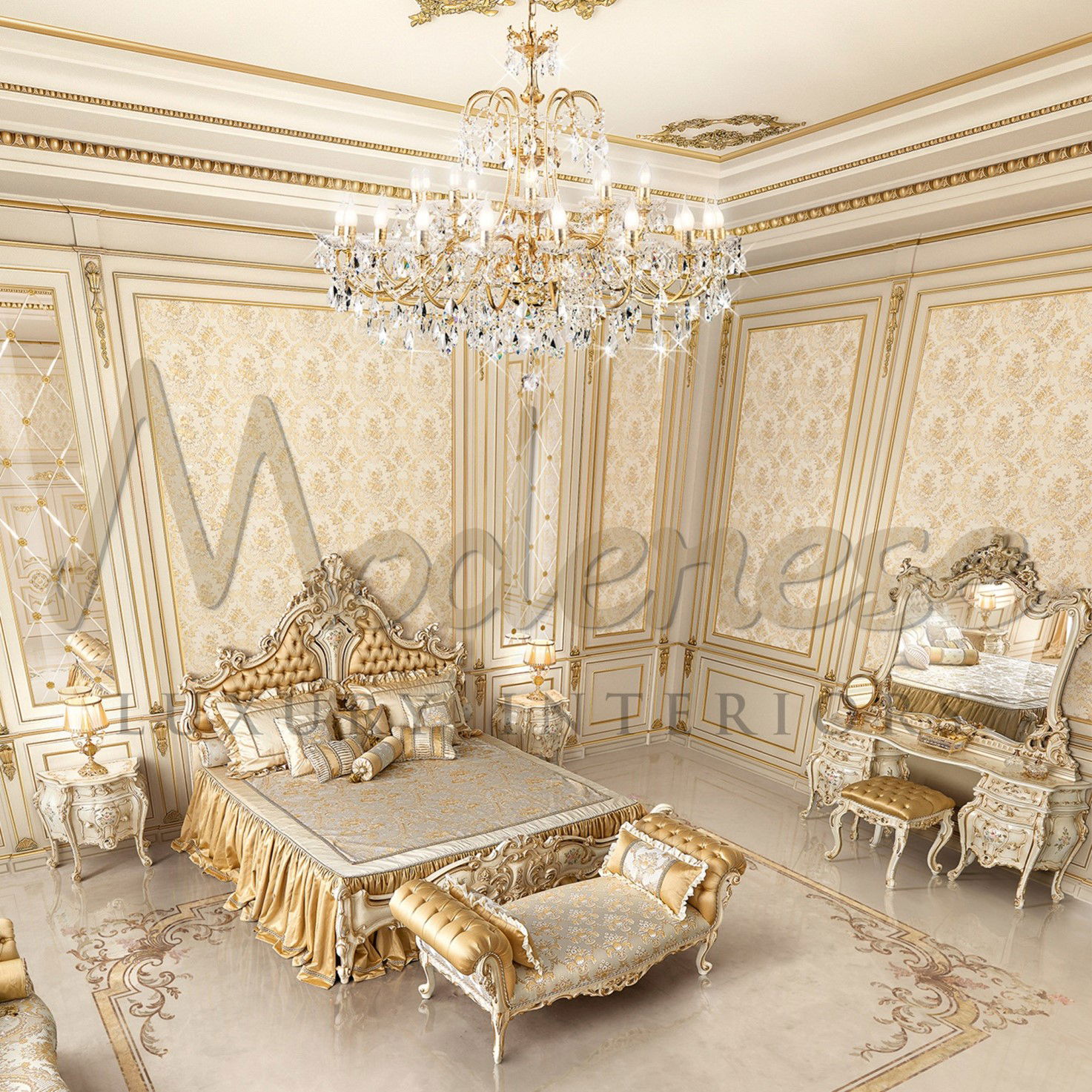 我们为这个奢华迪拜卧室的室内设计开发了我们最喜欢的又大又大胆的照明,确保您拥有巨大的灯光和出色的风格。凭借其 3 灯、5 灯、7 灯等等,奢华迪拜卧室的室内设计照明采用错落有致的圆形照明设计,并采用抽象形状,让您拥有多种风格!无论您从哪个角度看,它都会闪耀。超大型的装置非常适合在时尚前卫的主题中营造声明。