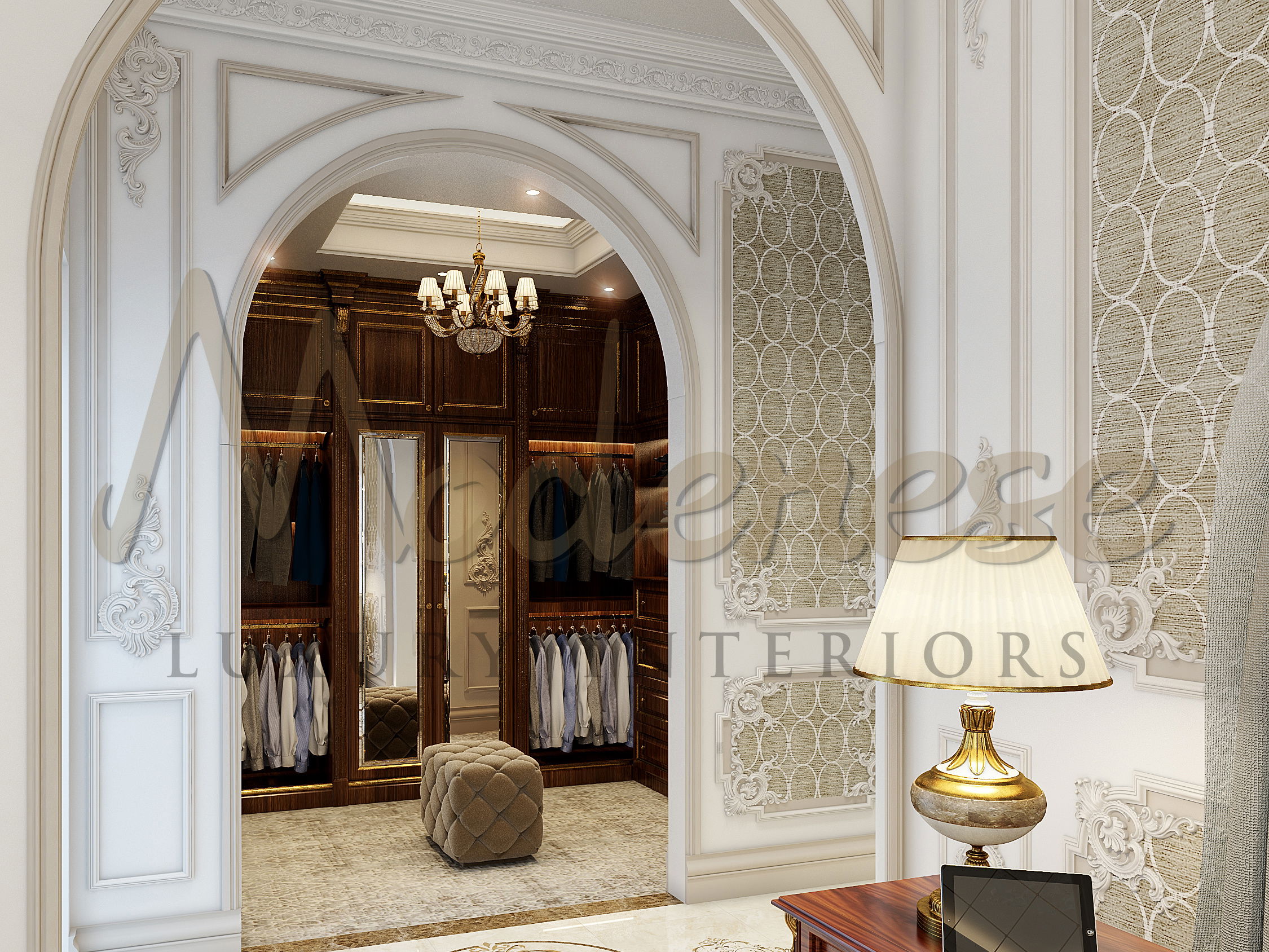 东方魅力在室内设计中也可以有不同的表现形式。它可以是明亮而色彩丰富的,也可以是温柔而轻盈的,就像清晨的露珠。来自 Modenese Luxury Interiors 的摩洛哥风格室内设计是对传统亮点的一种全新诠释。设计师们在成熟的规范中融入了现代元素。卓越的舒适性与精致的室内风格相结合。精致的蕾丝和传统图案雕刻在室内,带来摩洛哥的浪漫气息。意大利设计师在这个项目中巧妙地重现了房主轻盈明亮的气质。