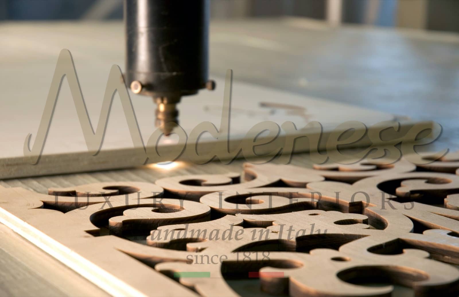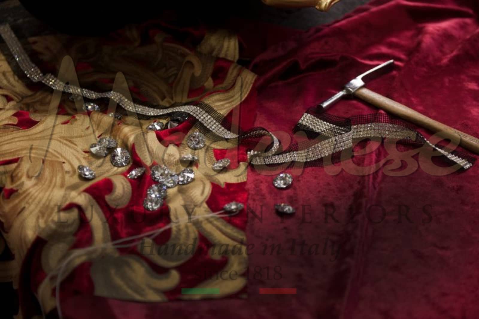 Modenese Luxury Interiors 生产顶级品质的金箔手工贴面家具。该工艺包括将金箔应用于实木。这提供了奢华和巴洛克风格的触感。