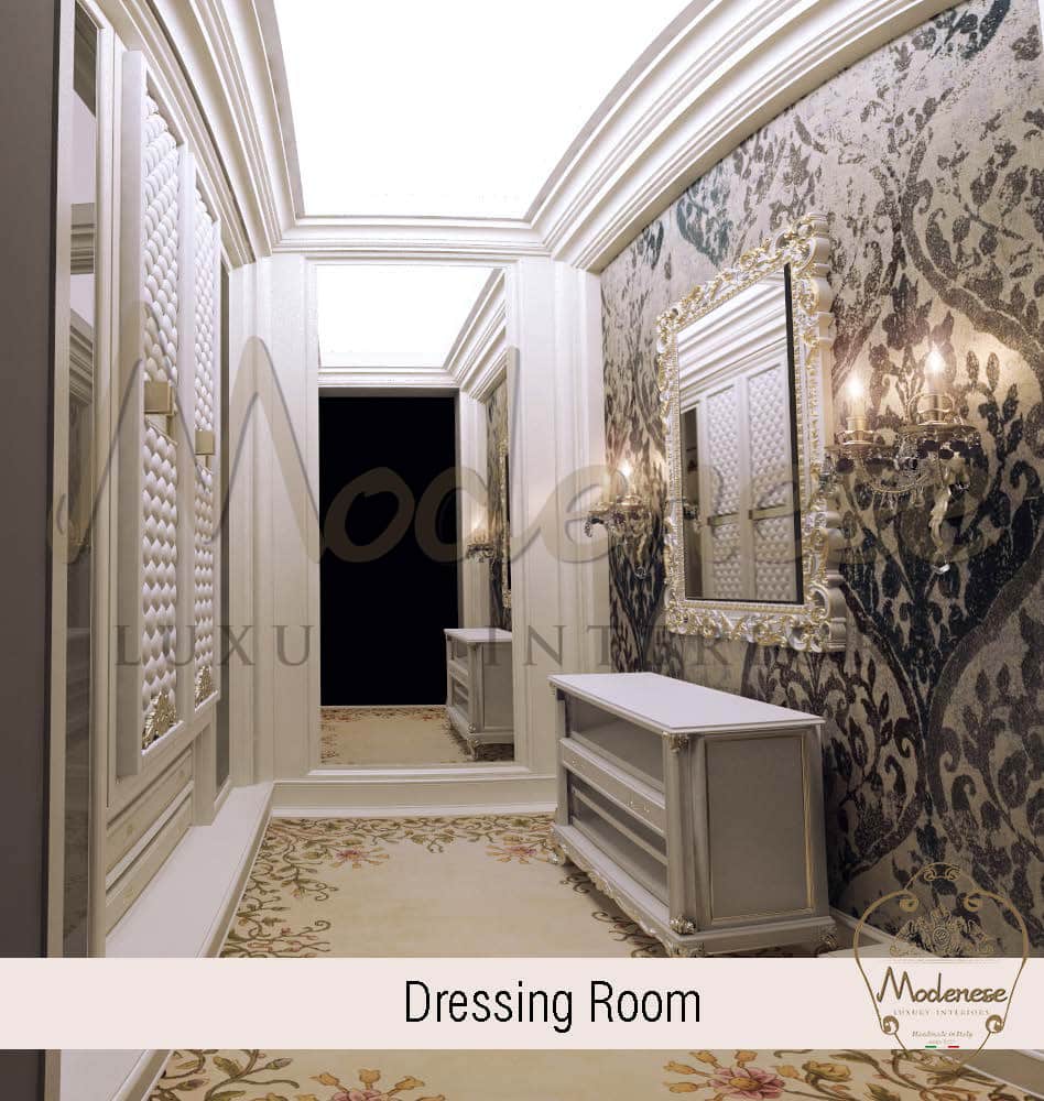 衣帽间应该至少有三种类型的照明:用于一般照明的上方嵌入式照明,用于突出显示配饰的架子和架子下或背后的集成 LED 照明,以及用于个性和氛围的令人惊叹的吊灯。如果你有一个梳妆台,你还需要专门的照明。
