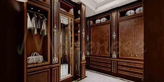 衣帽间应至少有三种类型的照明:架子和衣架上方的嵌入式照明用于一般照明,架子和衣架下方或后方的集成 LED 照明用于强调配饰,以及一个宏伟的吊灯用于个性和氛围。如果你有一个梳妆台,你还需要专门的照明。