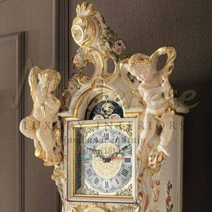 Modenese Luxury Furniture供应商生产的奢华威尼斯风格祖父钟强调了对最高意大利品质标准的持续关注。我们随时准备为客户提供服务,帮助他们选择最适合的落地钟来丰富家居装饰氛围。现在就用优质材料、手工绘画装饰和定制元素打造您自己喜欢的奢华祖父钟设计。尽情享受您的奢华时光!