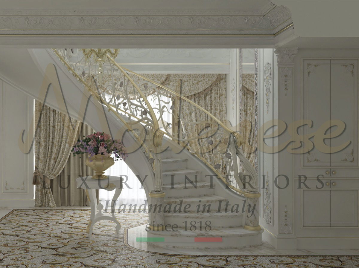 这座古典风格的宏伟楼梯已成为豪宅的构成轴线。带有浅色大理石台阶的大楼梯显得轻盈而优雅。