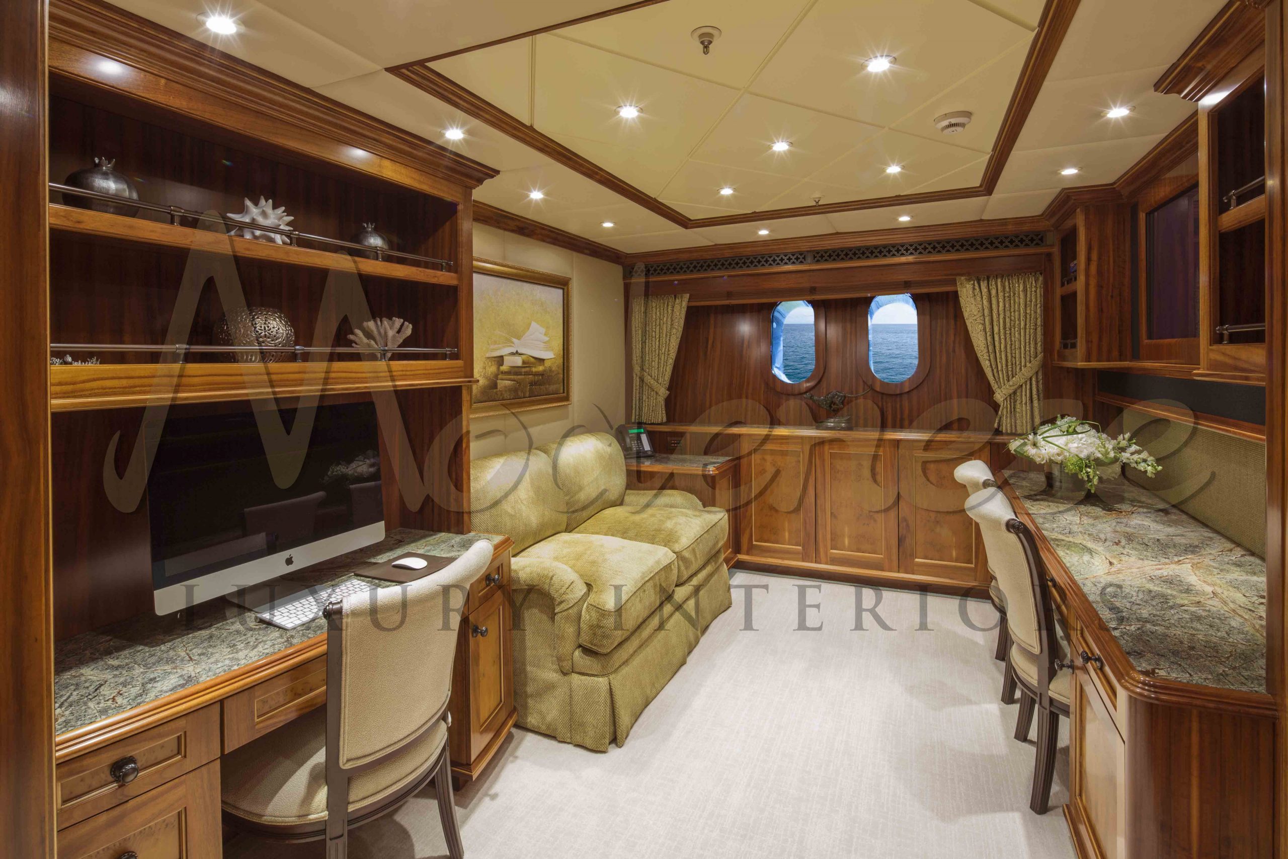 内部装饰着手工制作的意大利家具。意大利工匠为这艘游艇开发了定制家具。