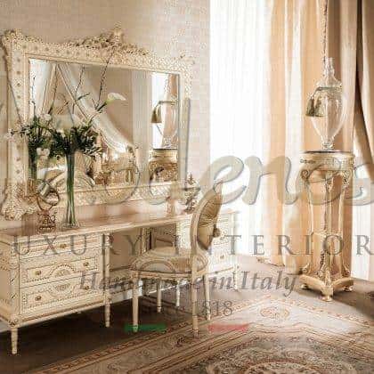 卓越的实木结构和优雅的雕刻线条相结合,代表了 Modenese Luxury Interiors 梳妆台的特别系列。这是一个通过传统意大利工艺而著称的精致系列。梳妆台将以独特的优雅和实用性来完善您的化妆室或主卧室。我们的梳妆台均可定制,并可与您的豪华家具项目的其他室内设计相匹配。