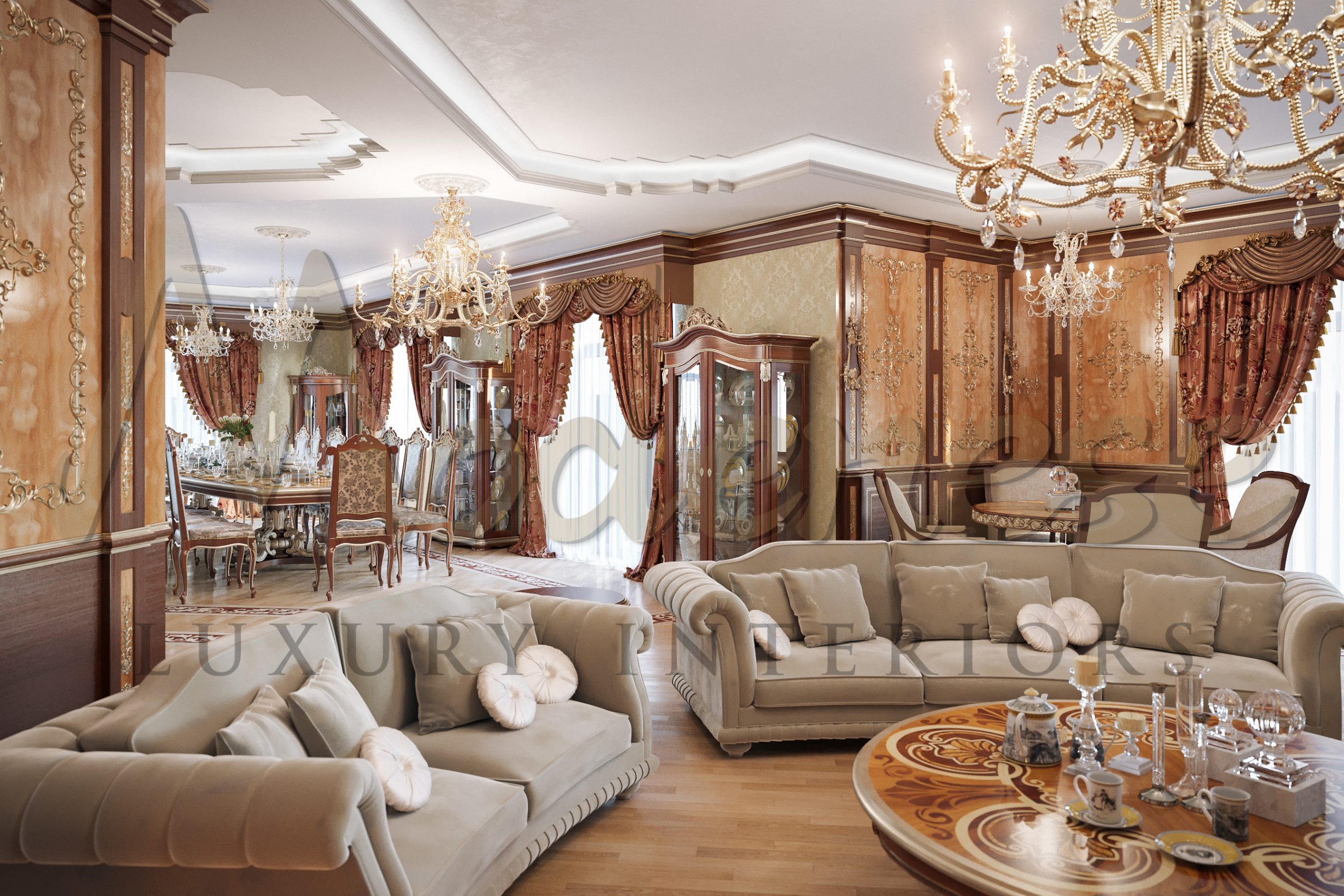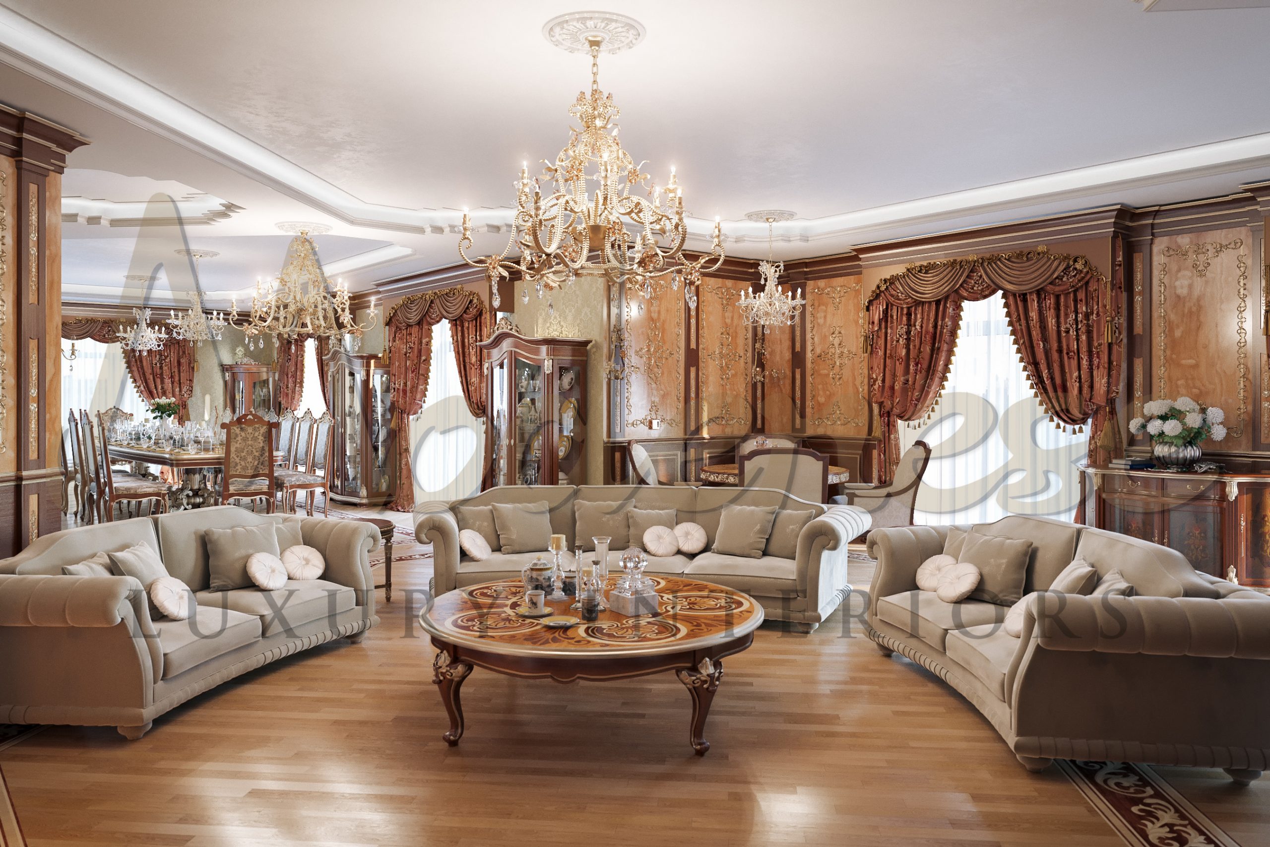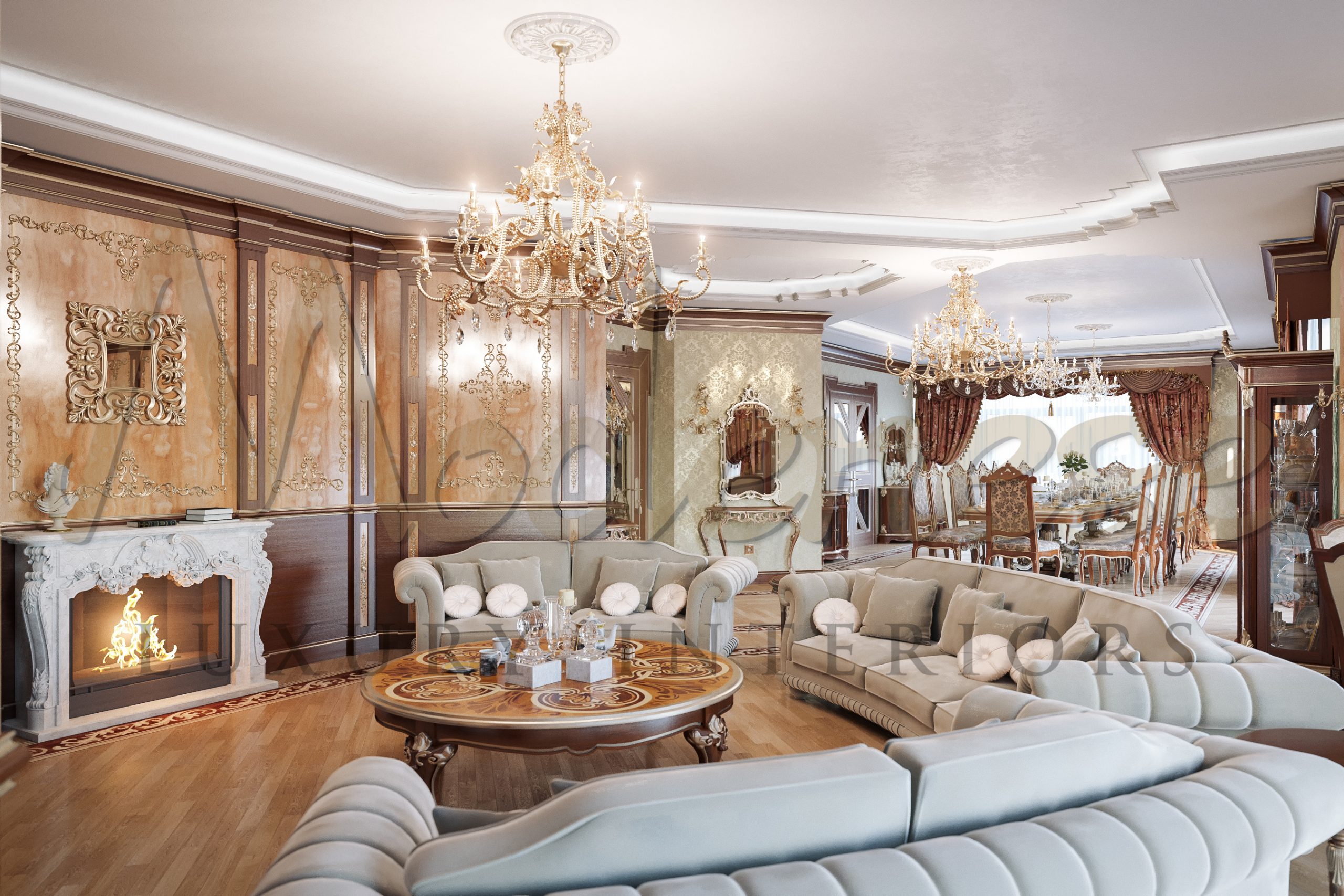 Modenese Luxury Interiors 公司的设计师将新鲜的想法、现代技术和优雅的风格传统相结合,以制作如此惊艳和完美的设计。奢华的古典客厅是美好室内故事的 culmination,其中每个特征、设计的每个方面都有其哲学价值。客厅的装饰已成为展示房主良好品味、尊重和热情的首要方式。