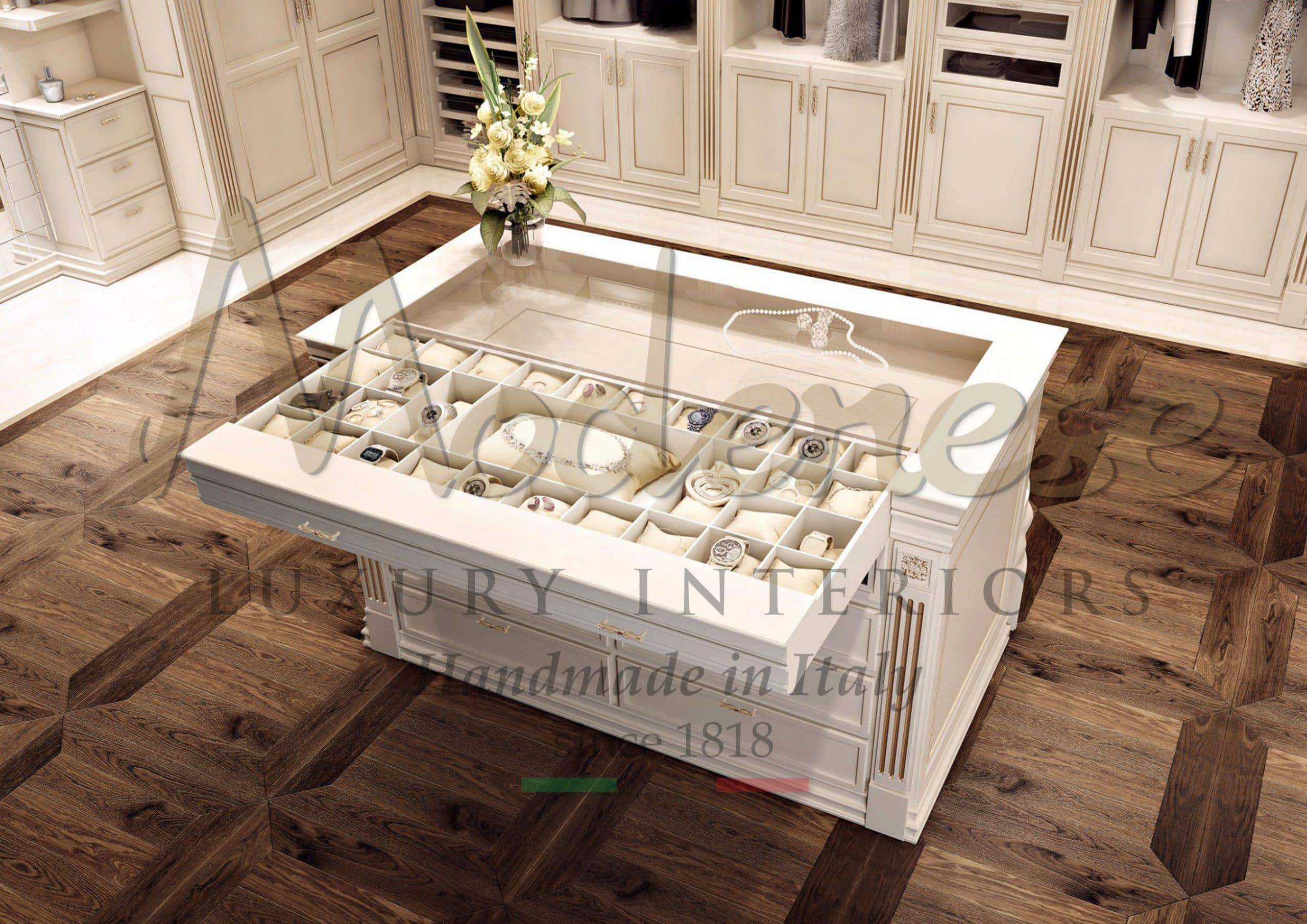 最佳的意大利定制步入式衣帽间项目,研究布局并分析客户的想法。巴洛克式奢华风格或优雅而奢华的精致衣帽间设计,由 Modenese Luxury Interiors 设计工作室提供。我们的室内设计服务将为您选择最佳方案,并根据特定尺寸、木材饰面和独家配件定制风格。我们产品的卓越之处在于实木材料和高端意大利品质。