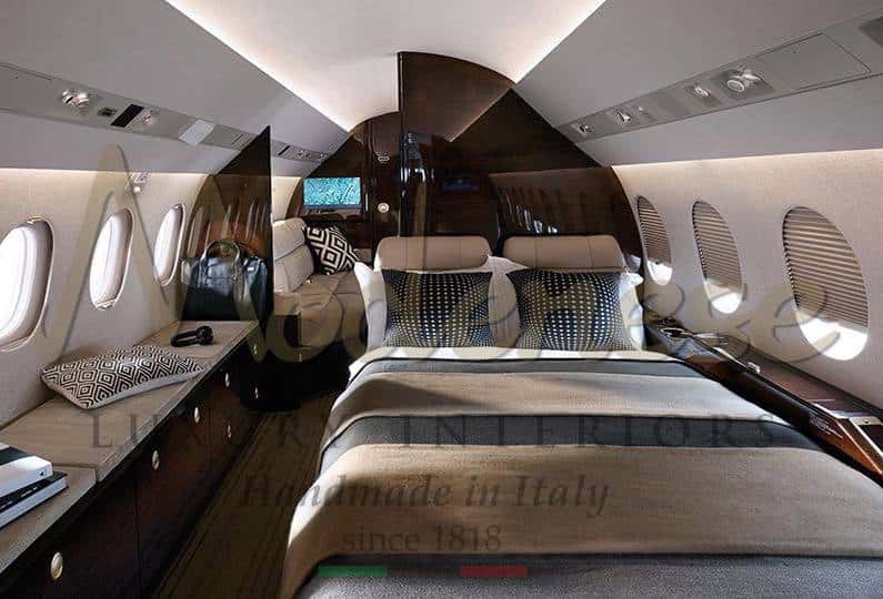 享受 Modenese 私人飞机内饰的真正舒适:专属的倾斜扶手椅、豪华的装饰、实用的定制配件,让您的飞行更加愉快。为您的私人飞机提供最佳品质和设计服务,采用传统的意大利风格:所有元素始终经过精心研究,以保证在意大利设计飞机的内部项目中获得最专属的旅程。