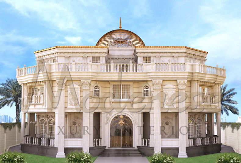 圆角设计独特,在外部设计中并不常见。现代和简约设计如今很受欢迎,但 Modenese Luxury Interiors 总是乐于接受挑战。我们以现代手法打造了这款经典外部风格,兼具品质和优雅。古典外立面不应局限于古老的元素,它可以转变为每个人都会喜欢的华丽现代杰作。舒适且有吸引力的住宅需要一丝不苟且详细的布局。我们是您打造令人难以置信的美丽和奢华住宅的合作伙伴。我们的组织是一家世界著名的建筑和室内设计公司。我们很高兴展示这项令人惊叹的艺术作品,因为它为整个住宅带来了独特的外观。